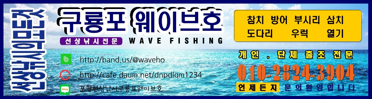 [루어낚시][생활낚시][웨이브호][야유회][바다루어낚시][체험선상낚시낚시][도다리선상낚시][바다낚시여행][동해안선상낚시][동해안바다낚시][튜나][캐스팅게임][선상루어낚시][대보호미곳][선상낚시전문][배낚시전문][참치][구룡포웨이브호][바다루어낚시][대삼치대방어전문웨이브호][포항낚시여행][구룡포선상낚시][구룡포뉴웨이브호][뉴웨이브호][왕볼락불볼락전문]