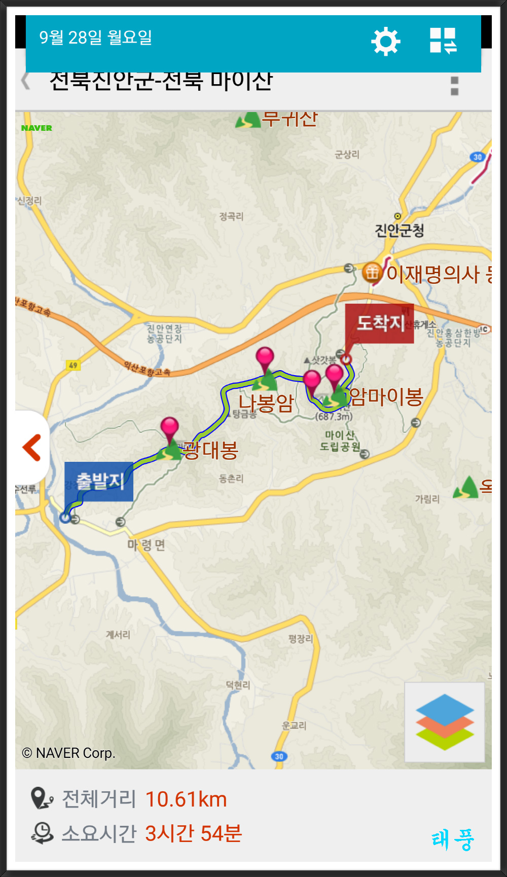 15.09.28 진안 마이산 산행기(합미산성-광대봉-봉두봉-탑사-암마이봉-북부 주차장) 작성자태풍이|작성시간15.09.29|조회수138 목록 댓글 2 글자크기 작게가 글자크기 크게가 다음검색 현재 게시글 추가 기능 열기 북마크 공유하기 신고 센터로 신고 댓글 댓글 2 댓글쓰기 답글쓰기 댓글 리스트 작성자미니♥미니짱 | 작성시간 15.09.29 보고 또봐두 신기한 탑사의 모습...마이산두 신비롭지용ᆢ남자와 여자.ㅋㅋ이쁜 암마이봉에 태풍씨랑로퍼님모습이완전 멋지십니당ᆢ두분 영원하시길...수고하신님 사랑합니다~~~♡♡♡ 작성자ㅇ여왕벌ㅇ | 작성시간 15.09.30 주말에 가면 언제나 그자리계신 태풍대장님 믿음직스럽습니다 오랫만에 로퍼님 반가웠고 두분 사진포주 쥑여주네요 멋지십니다 댓글 전체보기