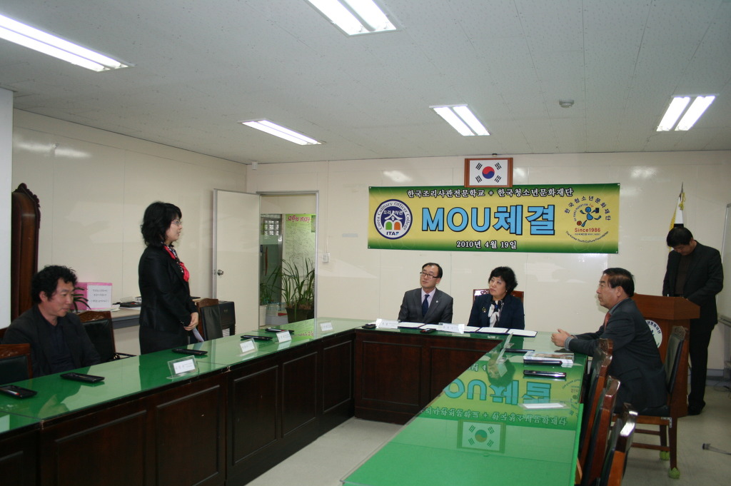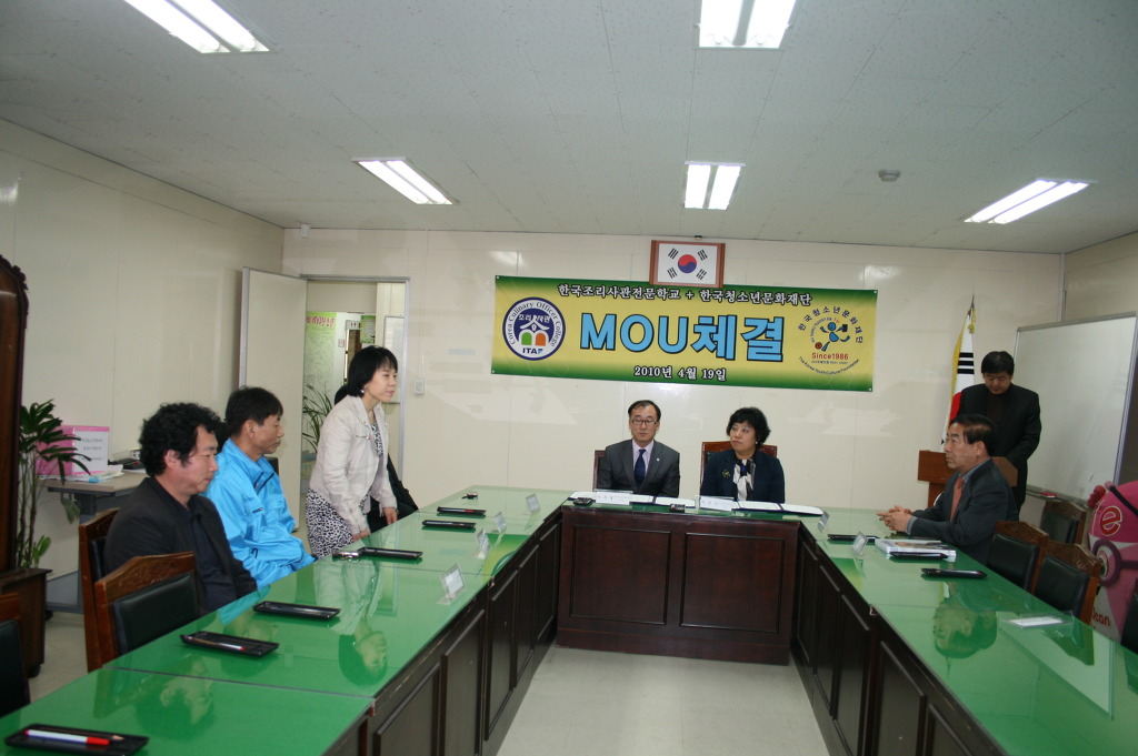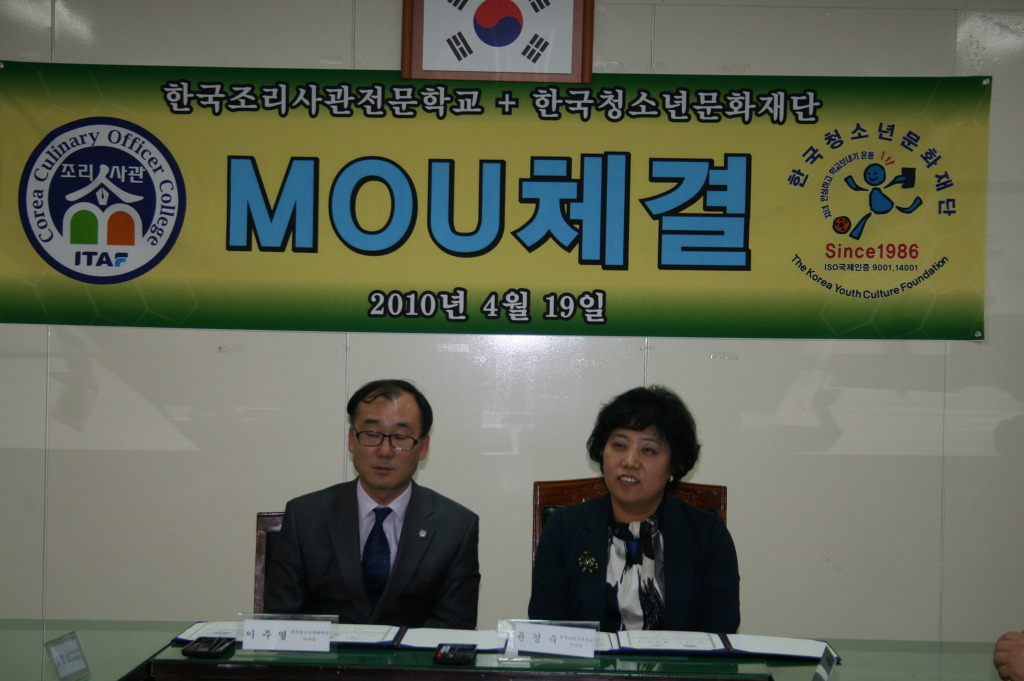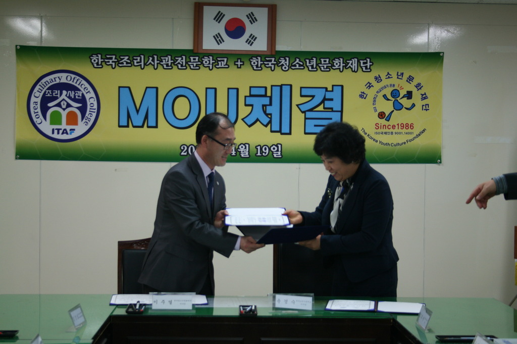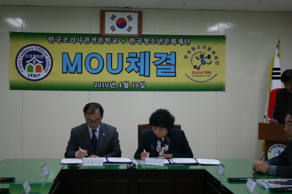 4월 19일 오후 3시30분에 한국청소년문화재단 세미나실에서 한국청소년문화재단과 한국조리사관학교 간 산학협약식이 있었다.