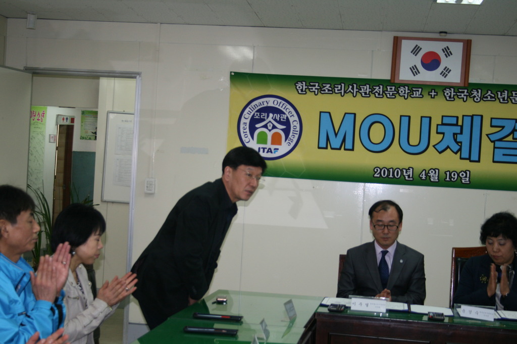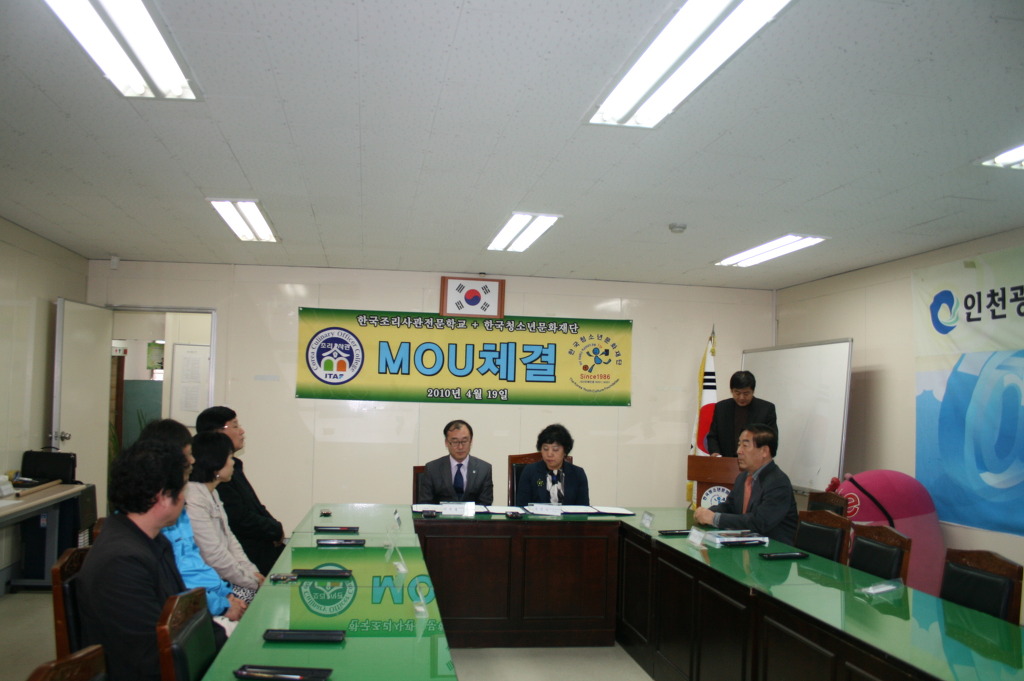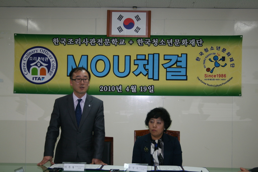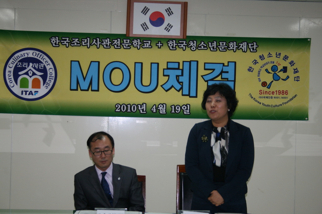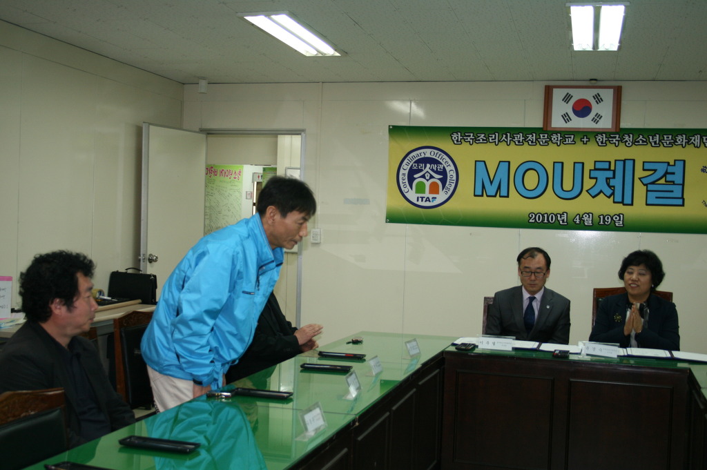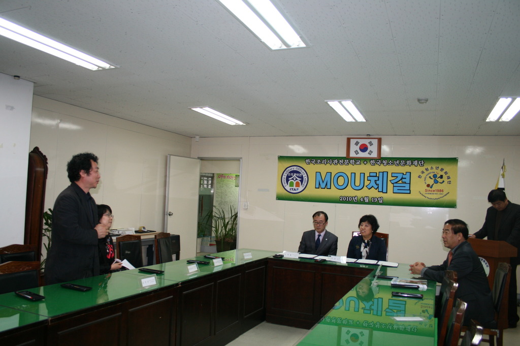 4월 19일 오후 3시30분에 한국청소년문화재단 세미나실에서 한국청소년문화재단과 한국조리사관학교 간 산학협약식이 있었다.