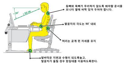 1. 모니터를 보는 시선은 30도 정도 아래를 향하게 하여