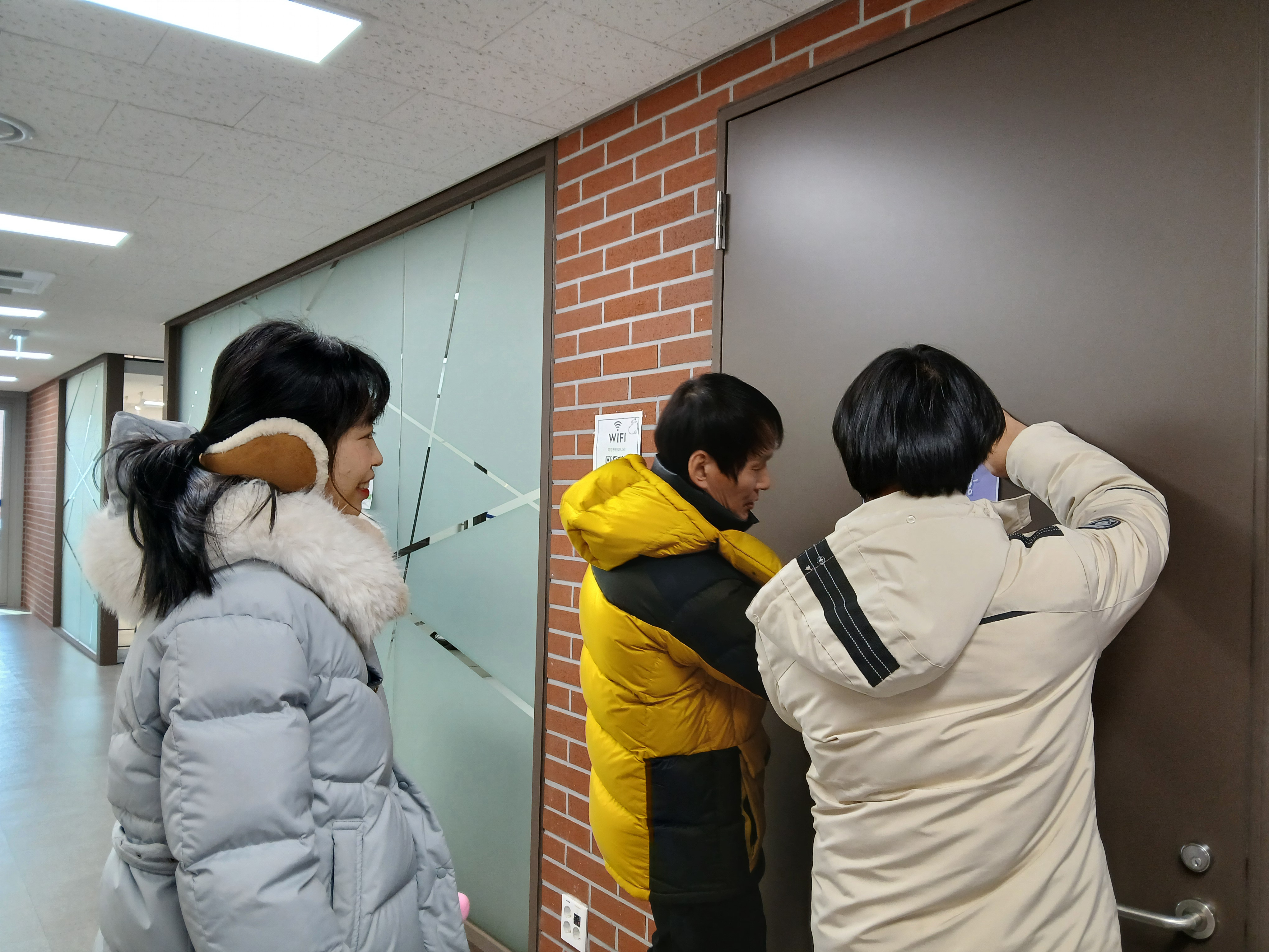 함께팀 공간에서 포스터 수정 과정을 지켜보시던 금○쌤이 “이제 뭐 할 거예요?”라고 물으셨고, 계획을 말씀드리자 같이 가자며 기꺼이 동행하기로 했습니다. 이어 금○쌤이 자연스럽게 주○쌤께도 같이 가자고 제안하셨습니다. 주○쌤 역시 당연한 듯 동행하기로 했습니다. 회의를 하는동안 함께팀 공간 한쪽에서 장○님이 핸드폰을 하고 계셨는데, 은○쌤은 모두가 나가고 장○님 혼자 남아있을 것이 마음쓰였던 것 같습니다. 은○쌤이 “장○님도 같이 가실래요?”라고 여쭤보셨습니다. 장○님은 들뜬 목소리로 기쁘게 “뭘 하면 될까요?”라고 하셨습니다. 그렇게 총 다섯 명의 든든한 팀이 결성되었습니다.