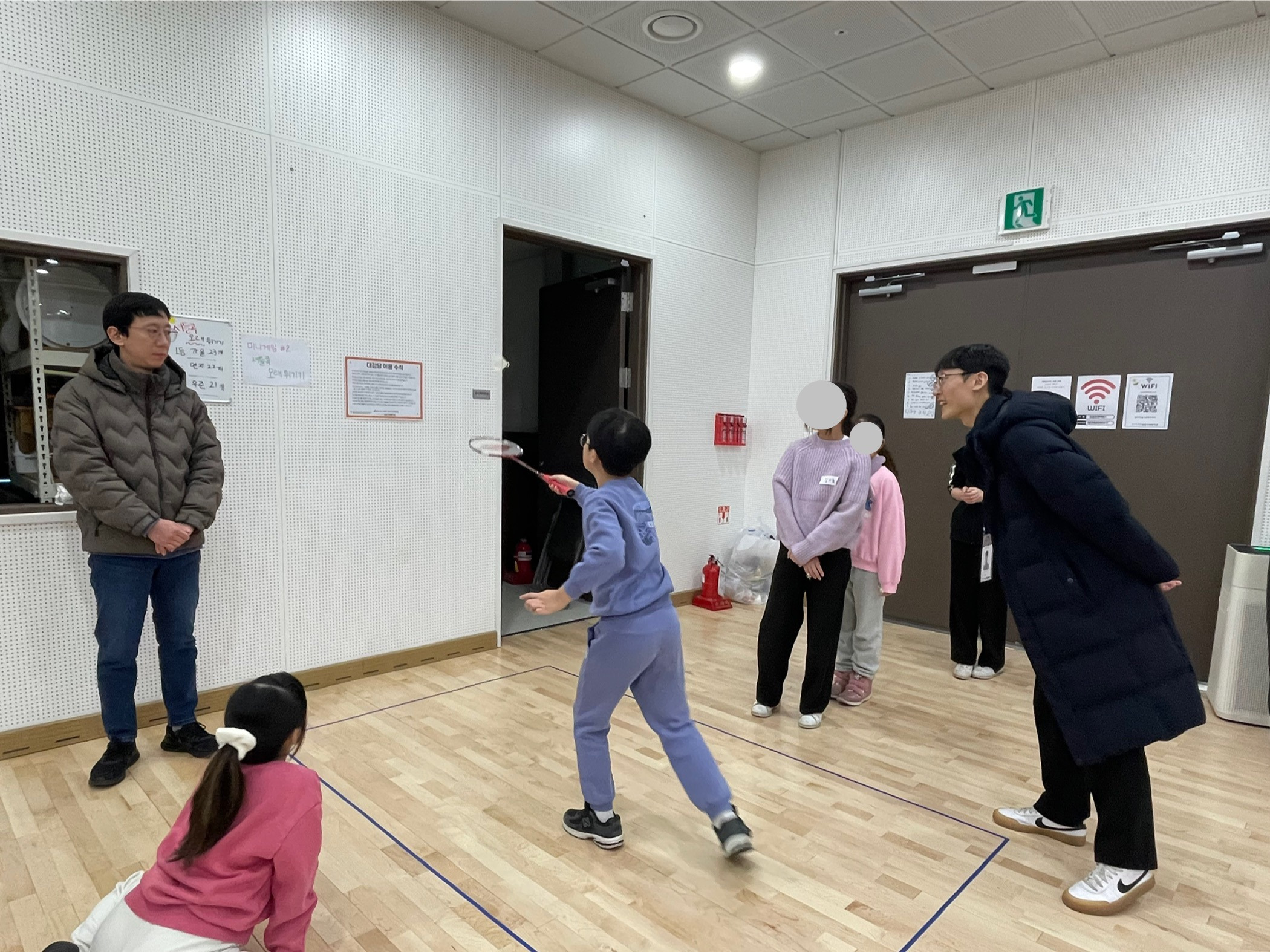 아이들을 맞이하기 전, 리그전의 주최자인 주O쌤과 주란쌤이 다시 한 번 각자의 역할을 안내해 주셨습니다. 리그전 시작 전 입구에서 참여 아동들의 서명을 받는 역할과 시작 이후에는 미니게임(셔틀콕 오래 튀기기)을 진행하는 역할을 맡았습니다. 은O쌤은 경기의 점수를 넘겨주는 홍일점 심판 역할을 맡으셨습니다. 저와 은○쌤은 서로 조금 떨어진 자리에서 각자의 역할을 수행하느라 리그전 진행 중에는 대화를 나누지 못했지만, 각자의 자리에서 리그전을 즐기며 함께 만들어 가는 시간을 보냈습니다.