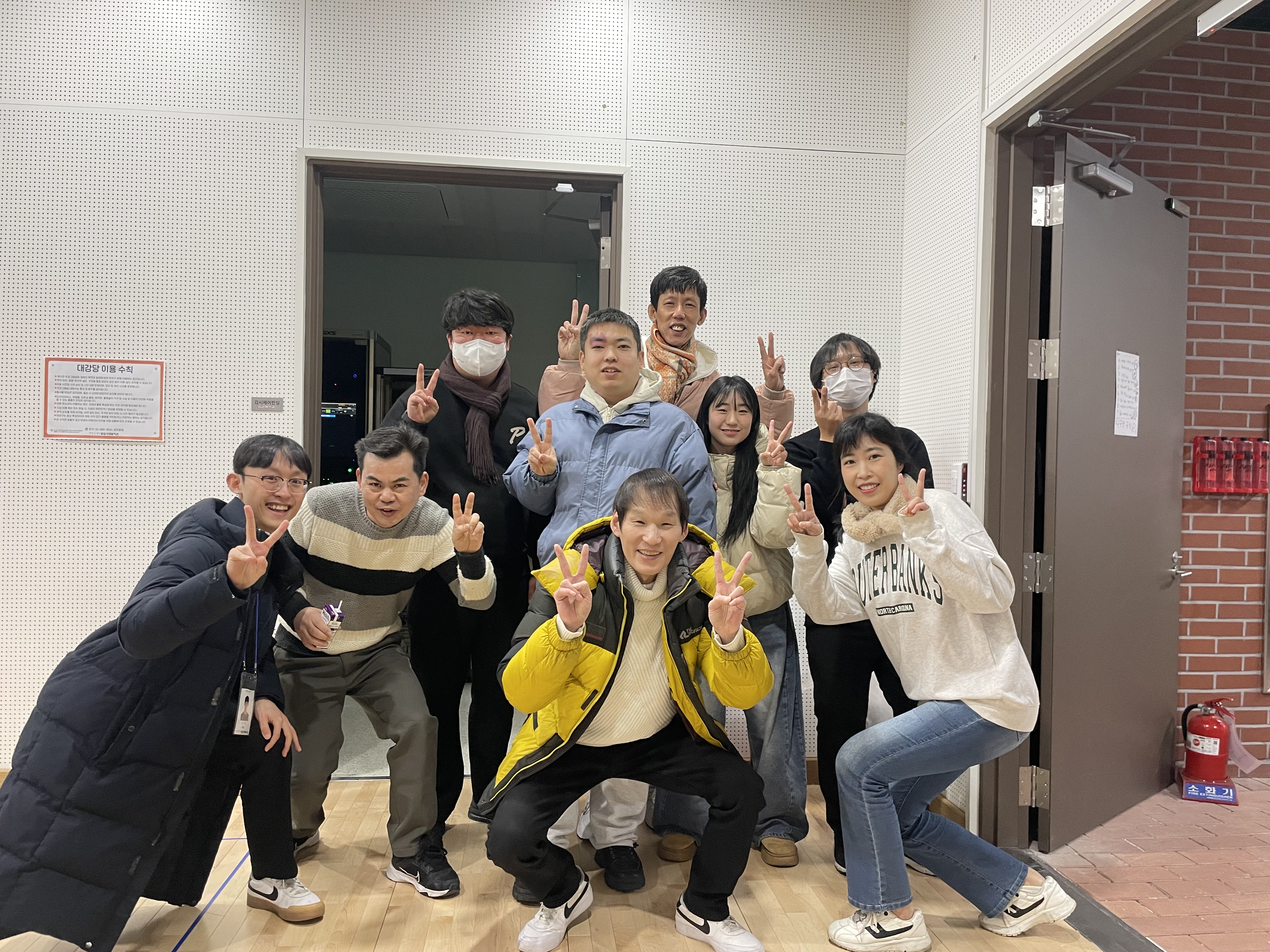그런데 어느새 함께팀 공간에 남아 있던 모두가 이 계획에 함께하게 되었습니다. 복지관 각 층과 엘리베이터, 그리고 외부 곳곳에도 열심히 포스터를 붙였습니다. 이후 그 길로 다 함께 다이소까지 걸어가서 반짝노래방에 필요한 상품과 데코레이션 용품을 구매했습니다.