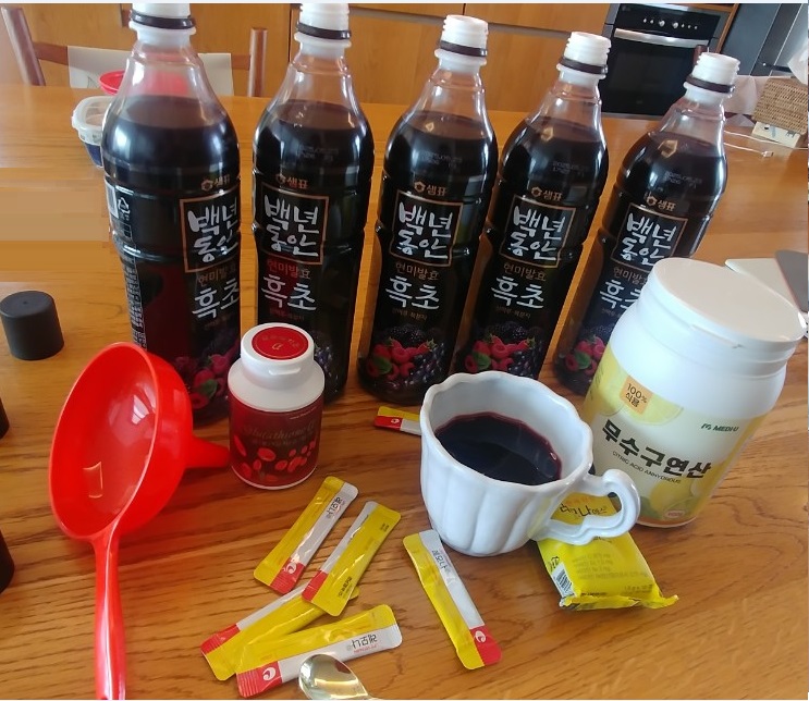 3) 매일 2-3 회 "흑초 (글루타치온. 구연산) 원액" 50% + “물” 50% 혼합해서 음복한다. 이렇게 매일 먹으면, "면역력 증진" "원기 회복" "정력 보강" 최고 보약(補藥)이 된다.