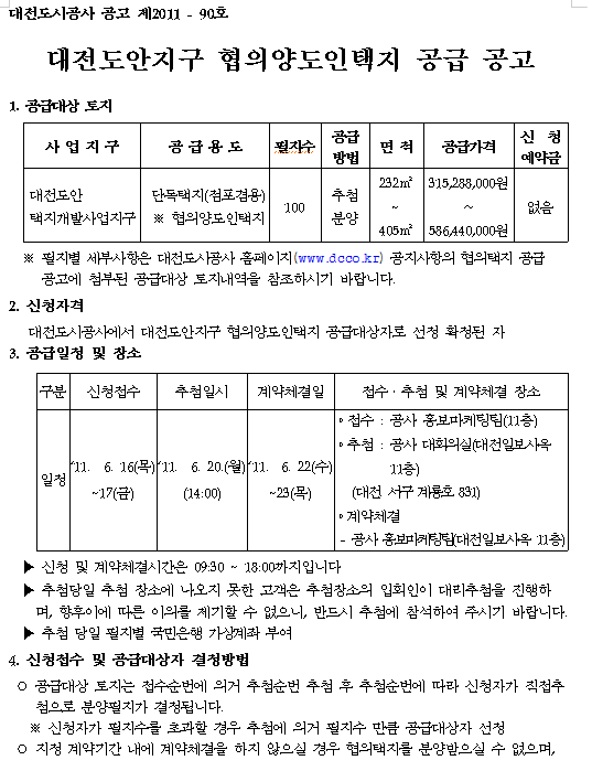 그리고, 이주자택지 및 협의양도인 택지의 공급대상 지역은 대상자와 사전 협의를 거쳐 결정하고, 개별필지는 대상자들의 추첨을 통하여 결정되었습니다.
