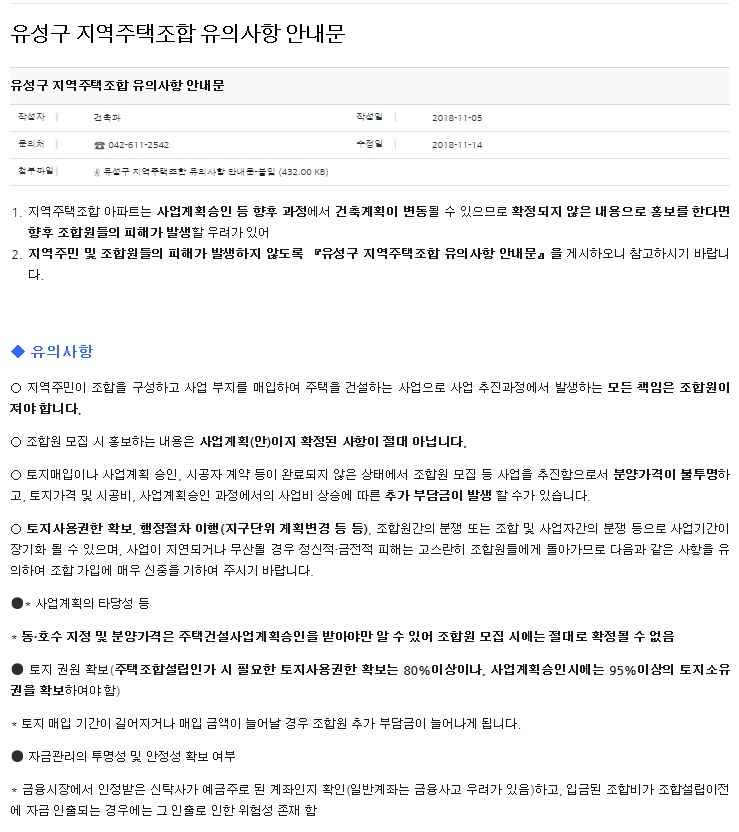 더불어 최근 용계동 일원을 개발하겠다는 업체들이 난립하고 있습니다. 일부 업체에서 개발동의서 제출 순서에 따라서 아파트 동·호수 지정과 할인분양 혜택 등 법적 근거 없는 선심성 과장광고로 여러분들을 현혹하고 있어 많이 혼란스러울 것으로 판단됩니다. 이는 현행법규 「주택공급에 관한 규칙」에 의거 불가한 사항이오니 여러분들의 각별한 주의가 필요합니다.