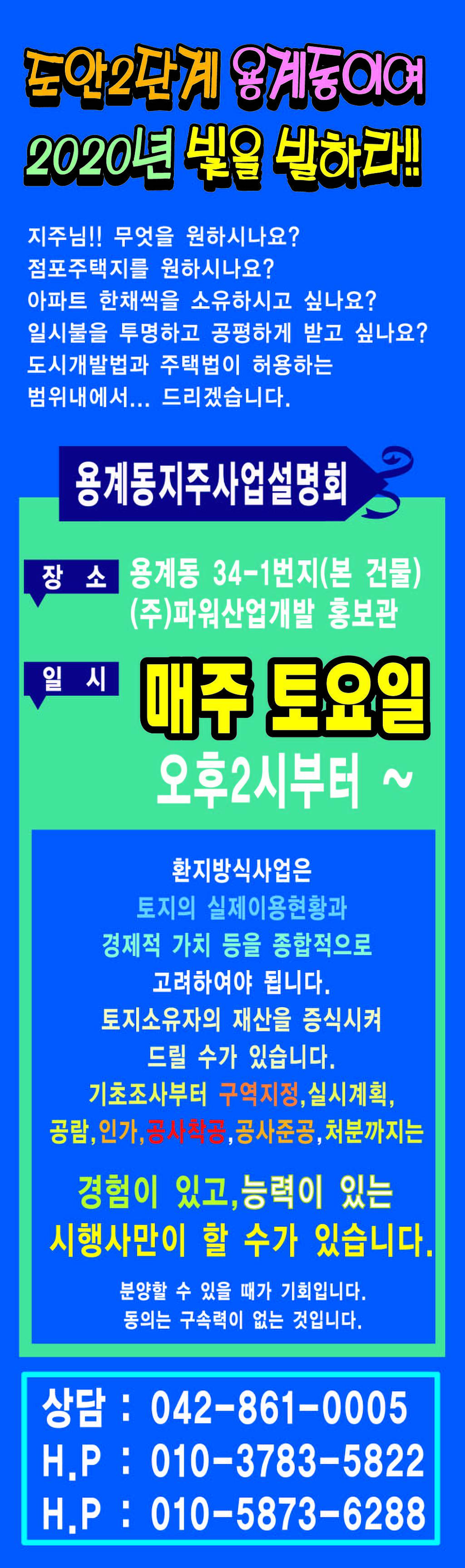 도안2단계-2020년개발합니다 -도시개발(환지방식)사업으로 (주)파워산업개발이 함께합니다. 작성자환지방식도안2단계용계동,학하동보상|작성시간19.03.30|조회수177 목록 댓글 0 글자크기 작게가 글자크기 크게가 다음검색 현재 게시글 추가 기능 열기 북마크 공유하기 신고 센터로 신고 댓글 댓글 0 댓글쓰기 답글쓰기 댓글 리스트