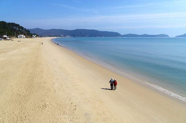 하여 명사십리이다. 하얗고 고운 모래가 넓게 깔린 광활한 백사장은