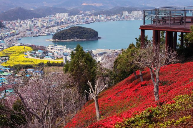 풍경과 쪽빛 바다와 유채꽃이 어우러진 휴식과