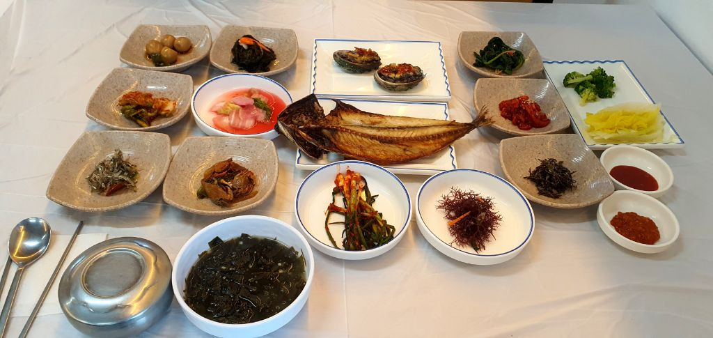 <서편제 식당>에서 전복찜 정식으로 점심식사를 합니다.