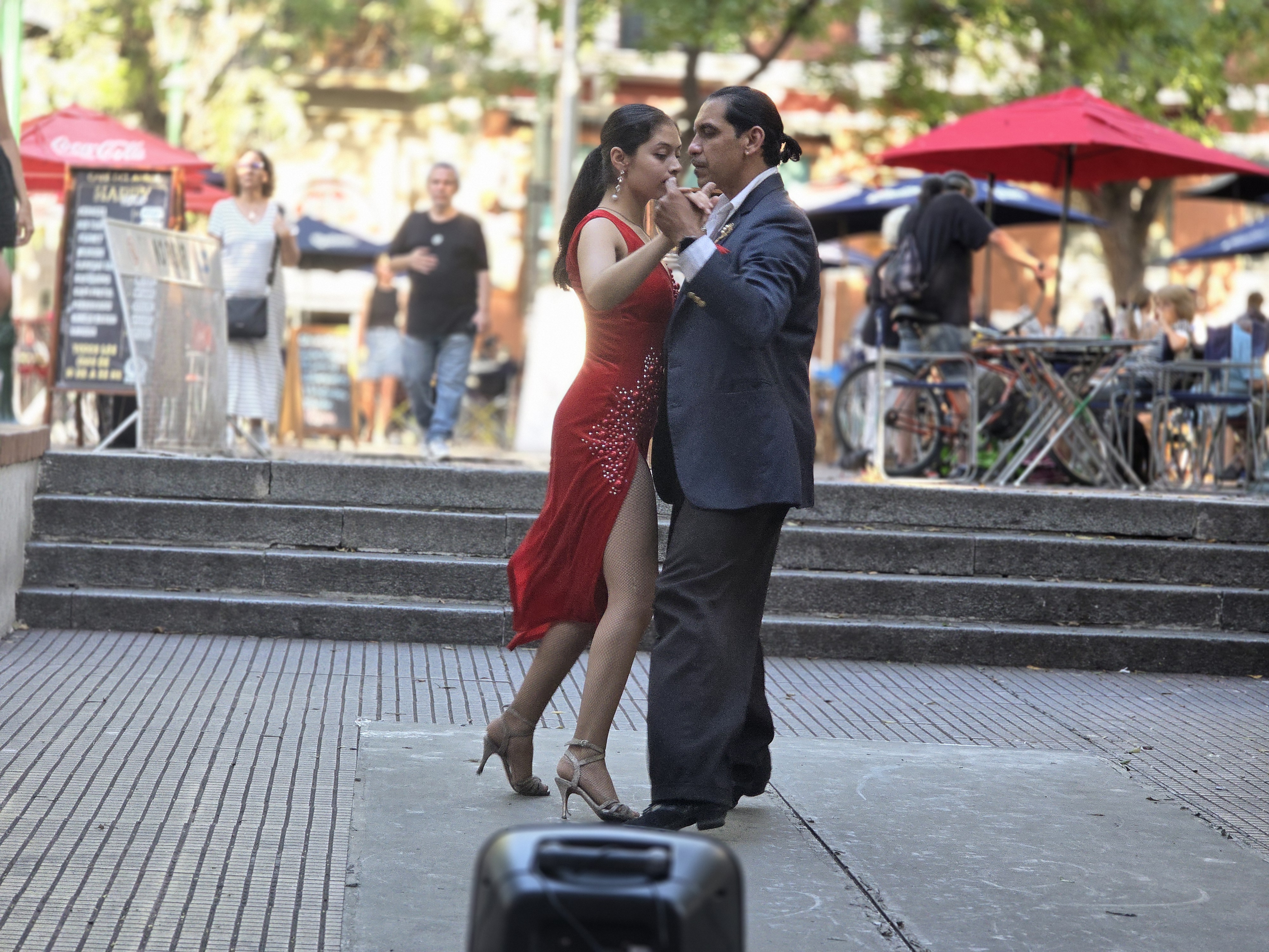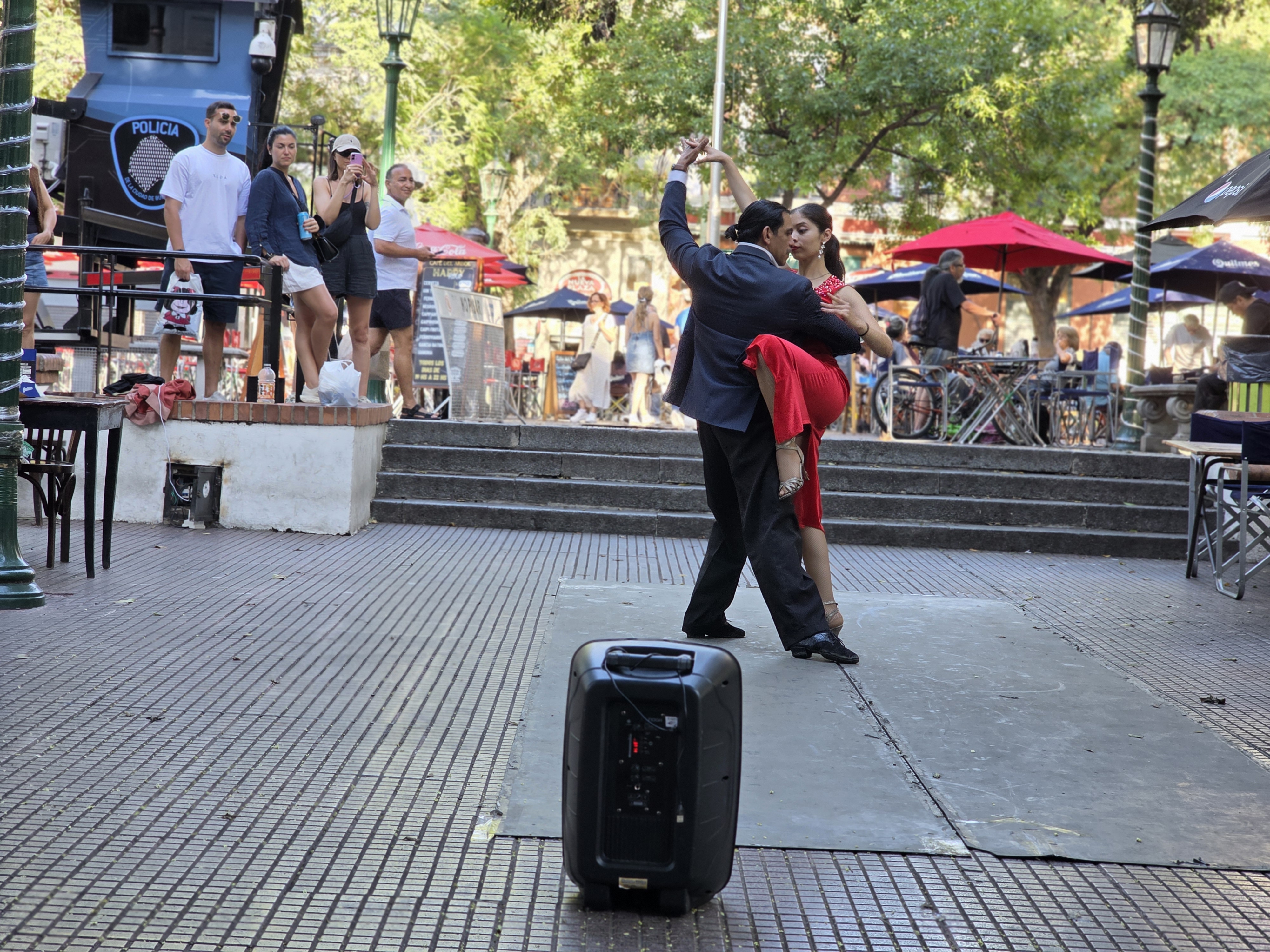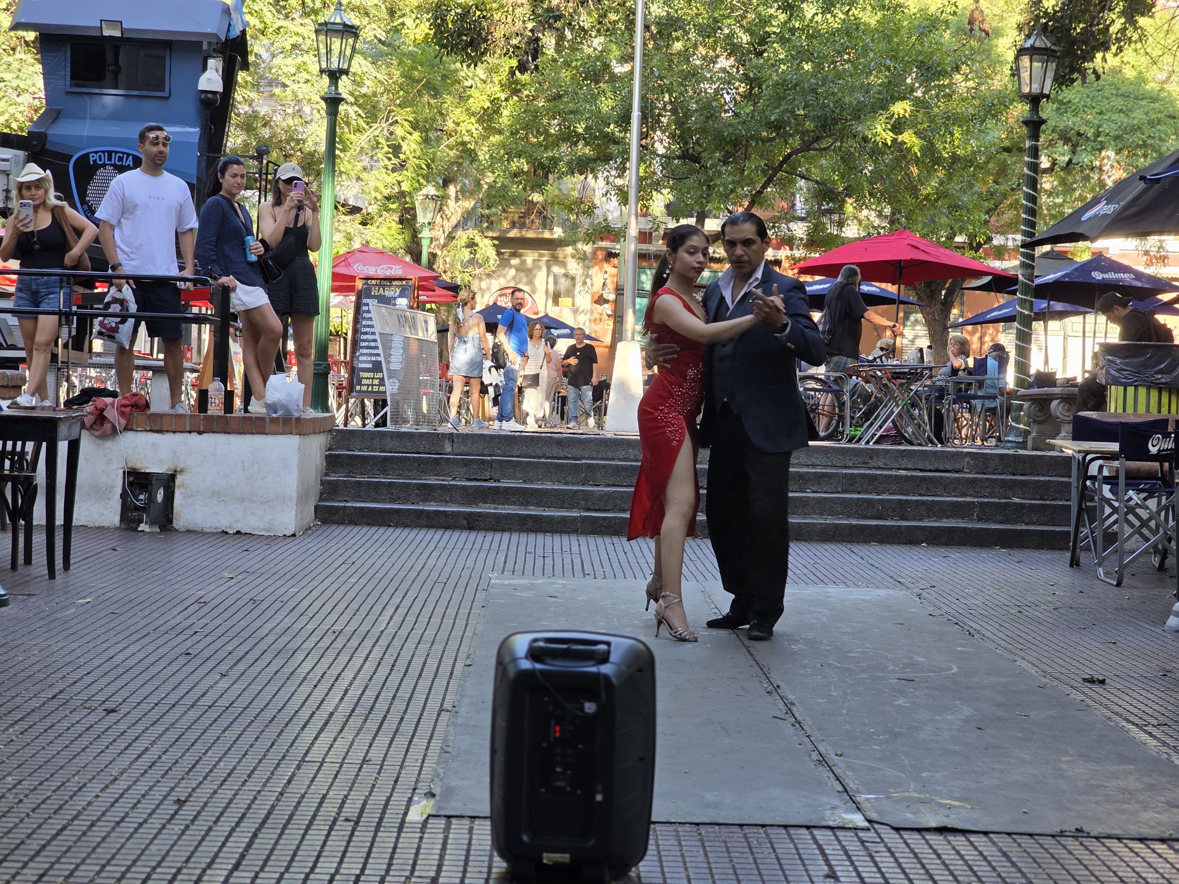 Dorrego 광장에서 피아졸라'의 'libretango' 선률에 맞춰 춤추는 관능적인 남녀 무용수를 바라보며,