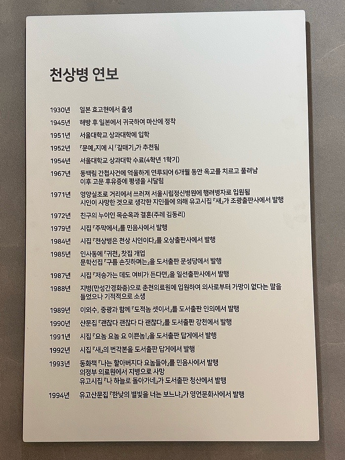 짓다가 1993년 4월 '귀천'하였다 서울대학교에 다닐 때였다. 하루는 교수님 집 화장대에 멋있는 병이 있어