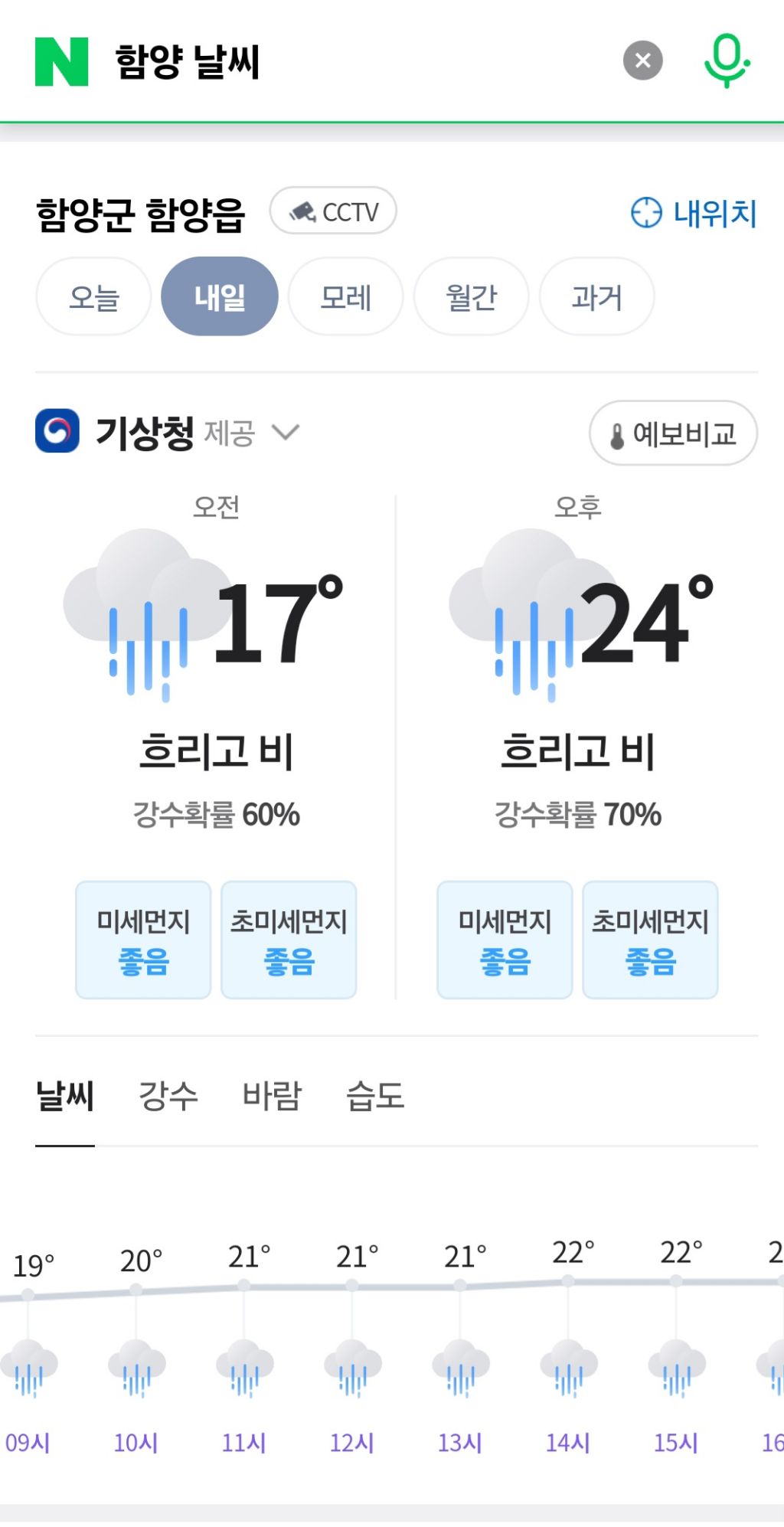 RE:6월 8일 (토) [전국정기도보] 함양 선비문화탐방로 (1,2구간) - 날씨 예보 작성자강물|작성시간24.06.07|조회수650 목록 댓글 3 글자크기 작게가 글자크기 크게가 내일 함양은 비 예보 있습니다.우중도보, 준비하시기 바랍니다.* 바람과 강수확률 * 다음검색 현재 게시글 추가 기능 열기 북마크 공유하기 신고 센터로 신고 댓글 댓글 3 댓글쓰기 답글쓰기 댓글 리스트 작성자여디야 | 작성시간 24.06.07 날씨 안내 감사합니다~ 작성자하얀 | 작성시간 24.06.07 감사합니다.참고하겠습니다. 작성자가가 | 작성시간 24.06.07 확인합니다~^^기온도 바람도 너무 좋아서우중도보여도 무지 기대되는 일정이 될거 같습니다~💞 댓글 전체보기