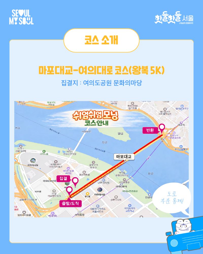 주말아침 텐션 UP !! 차없는 마포대교를 걷는 특별한 체험과 여의도 맛집에서 조찬을 함께해요