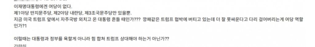 이재명대통령에게는 여당이 없다 작성자가벼운 숨결|작성시간25.09.28|조회수70 목록 댓글 0 글자크기 작게가 글자크기 크게가 다음검색 현재 게시글 추가 기능 열기 북마크 공유하기 신고 센터로 신고 댓글 댓글 0 댓글쓰기 답글쓰기 댓글 리스트