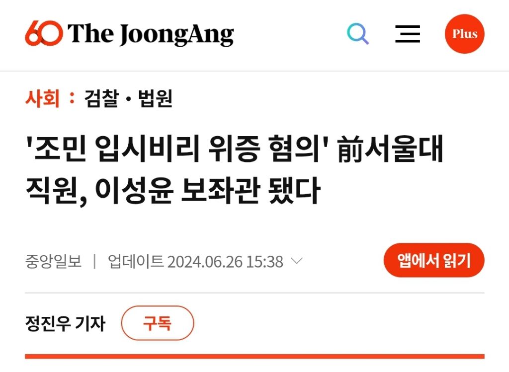 조민 입시비리 위증 혐의, 전서울대 직원. 이성윤 보좌관됐다. 작성자가벼운 숨결|작성시간25.12.28|조회수64 목록 댓글 0 글자크기 작게가 글자크기 크게가 '조민 입시비리 위증 혐의' 前서울대 직원, 이성윤 보좌관 됐다 | 중앙일보 https://share.google/3iEsUXl7vuICJFqnE'조민 입시비리 위증 혐의' 前서울대 직원, 이성윤 보좌관 됐다 | 중앙일보이성윤 더불어민주당 의원이 조국 조국혁신당 대표의 부인 정경심씨의 ‘자녀 입시비리 의혹’ 사건과 관련 위증 혐의로 기소된 전직 서울대 직원 김모씨를 보좌관으로 채용한 것으로 26일 확www.joongang.co.kr 다음검색 현재 게시글 추가 기능 열기 북마크 공유하기 신고 센터로 신고 댓글 댓글 0 댓글쓰기 답글쓰기 댓글 리스트