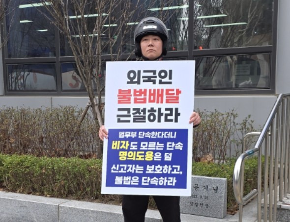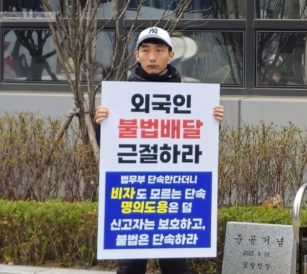 이번 시위는 법무부가 외국인 불법 배달 및 명의도용 문제를 대상으로
