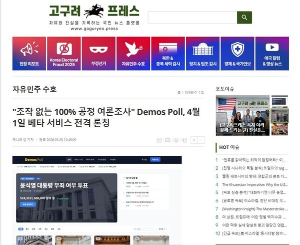‘조작 없는 100% 공정 여론조사’를 내세운 새로운 플랫폼 ‘데모스 폴(Demos Poll)’이