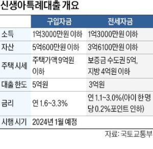 신생아 특례대출은 국토부가 저출산 극복을 위한 주거지원 방안으로 내년부터 출시 예정인 정책 모기지다. 대출신청일 기준 2년 이내 출산한 무주택가구를 대상으로 한다. 소득 1억3000만원 이하 가구가 9억원 이하 주택을 살 때 최대 5억원까지 대출을 받을 수 있다. 정부는 시중 금리보다 약 1~3%포인트 저렴한 연 1.6%~3.3% 금리를 적용할 예정이어서 수요자들 관심이 높다.