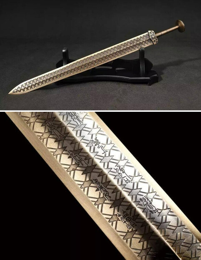 (사마천 사기 및 여러 고서에서도 메인 얘기로 나오지요. 오월동주, 와신상담의 배경 고사로 유명한 월나라 왕 구천의 검입니다. 실제로 출토된 유물이지요. 2,500년 된 청동검인데도 녹슨 곳 없이 원형 그대로인 검, 종이가 베일 정도로 날이 서 있었다 합니다.)