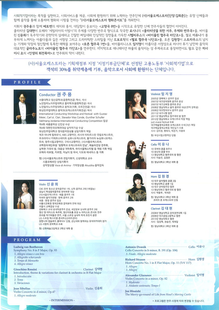 (해당공연은 5월 5일 어린이날 서울오케스트라의 공연을 관람하신 분들에게 우선권이 있습니다.