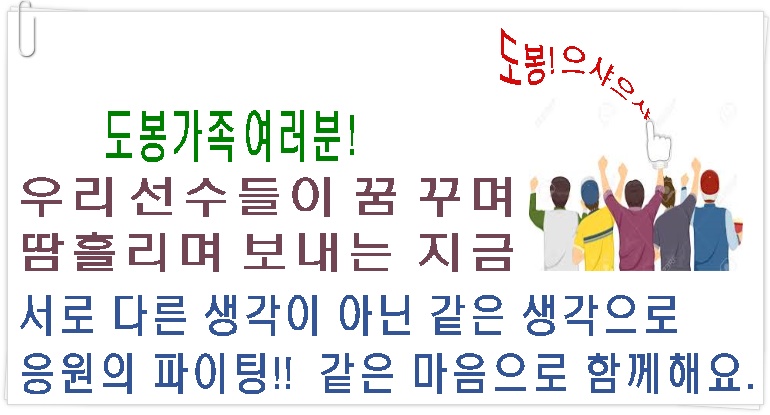 서로 엄지손가락 치켜세워주며, 하나되는 도봉중학교 축구부를 위해, 으쌰으쌰 합니다~ -