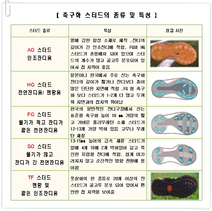 축구화의 스터드 종류와 특성은 다양해 특징에 따라 다양한 축구화를 신고 뛰면서
