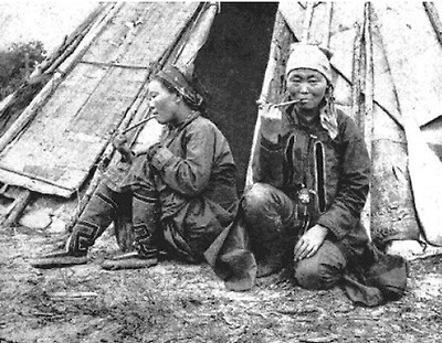 (길리약족 텐트와 여인- 인디언 텐트와 무엇이 틀린가?)
