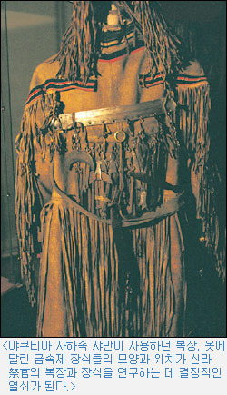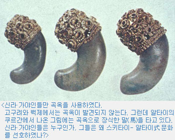 新羅의 신화·알타이의 눈보라·무덤 속의 女戰士·曲玉·금관·積石목곽분·싸랑·솟대·샤먼…