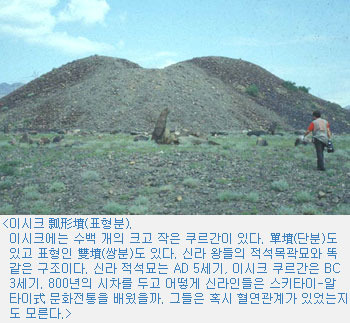 신라 왕족들의 무덤 형식은 積石墓(적석묘·cairn)로서 기마민족의 전통이다. 통나무집에다 시신과 부장품을 집어넣고 막돌로 둥글게 덮는 모양이다. 그 문화를 스키타이-알타이式이라고 부를 수 있다.
