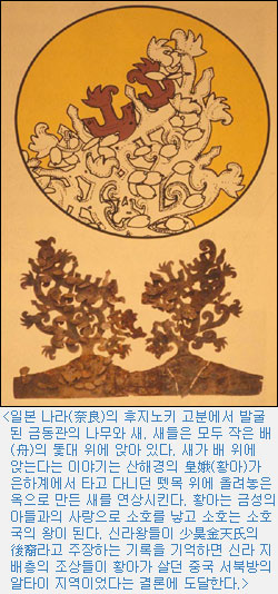 新羅 金氏의 조상인 金閼智(김알지)는 鷄林(계림)에서 탄생하였다. 유목민들의 민속 중 위대한 인물의 탄생에는 항상 커다란 나무를 통해서 생명이 내려온다는 것은 月刊朝鮮 9월호에서 설명하였다. 新羅人에게 그 나무가 바로 한랭지대에서만 자라는 白樺木이었다는 것이 민속과 역사적 기록과 고고학적 증거가 모두 일치하고 있는 현상을 우리가 마주치고 있는 것이다.