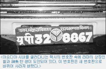 과연 아요디아 시내에는 수백 개의 힌두교 사원이 서 있고, 사원의 대문마다 문설주 위에 神魚 그림이 새겨져 있었다. 박물관의 입구에 그려진 神魚는 시위가 당겨진 활과 어우러져 있고, 경찰의 계급장에도 神魚가 들어 있었다. 도처에서 神魚는 사람의 생명을 보호하는 守禦者(수어자)의 기능을 하고 있었다. 神魚는 아요디아 전체에서 흘러 넘치고 있고, 그 州(주)를 대표하는 州章으로 발전해 있었다. 여기는 글자 그대로 神魚國(신어국)이었다.