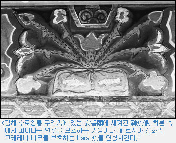페르시아 神話에서「가라」는 惡神으로부터 神木을 지키는 神魚를 뜻하는데, 페르시아 文化를 받은 許黃玉의 고국 아유타國에서 신앙의 대상이 되고, 許黃玉이 金海로 金首露王에게 시집와 그것이 가락국의 國章이 되는 歷史의 수수께끼를 풀다