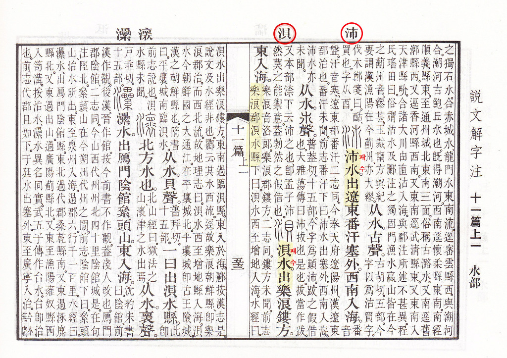 한나라 시대의 허신이 지은 설문해자에 나오는 沛水와 浿水의 해설이다.沛水에 대해서는 청나라때 개정한것으로 보이는데 난데없는 奉天府 遼陽州라는 설명이 나온다.