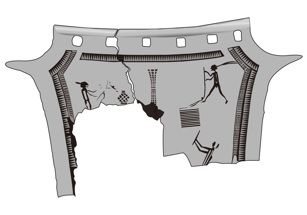 2천여년전의 농경문청동기에 새겨진 따비로 밭을 가는 고조선 농부 머리에 꽃은 깃털.