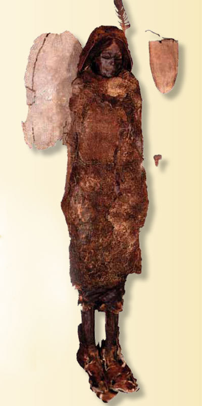4천년전의 <누란(Loulan) 미녀>에게 씌워진 모자의 깃털