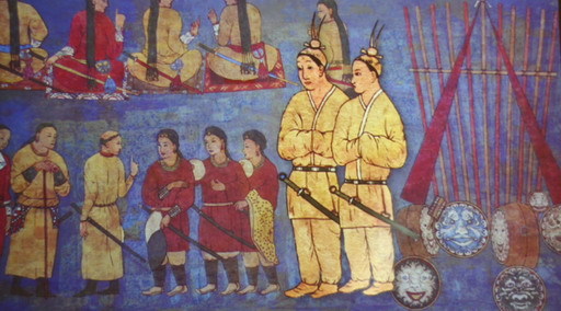 아프라시압 벽화에 그려진 조우관을 쓰고 환두대도를 든 고구려 사신