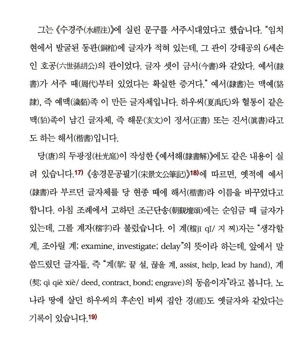 주나라에서 노예신분이 된 상나라 식자(識者)들은 예서를 만들었는데 노예(奴隸)들이 만든 글이란 뜻이 바뀌어 예서(隸書)가 되고 춘추전국시대를 거쳐 내려온 글자와 어순을 한나라때 뒤틀어 버렸다.