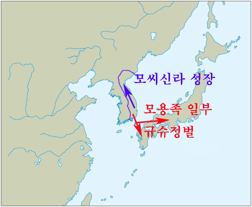 이들은 결국 성장한 <모씨신라>에게 복속당하거나 합병당한후 잔류세력은 다시 일본으로 넘어갔던것으로 보인다. 즉 몇자에 걸쳐 묘모용선비가 일본으로 건너가서 철기문화을 일으키고 일본열도에서 서로간에 정벌전쟁을 벌였다(5세기 중국기록에 근거).