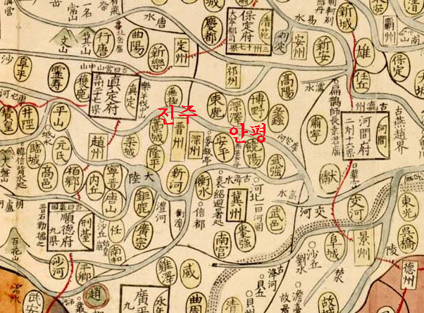 晋州와 安平의 두글자를 따서 晋平郡이 된것으로 보며 그 위치는 현 하북성 중남부이다.