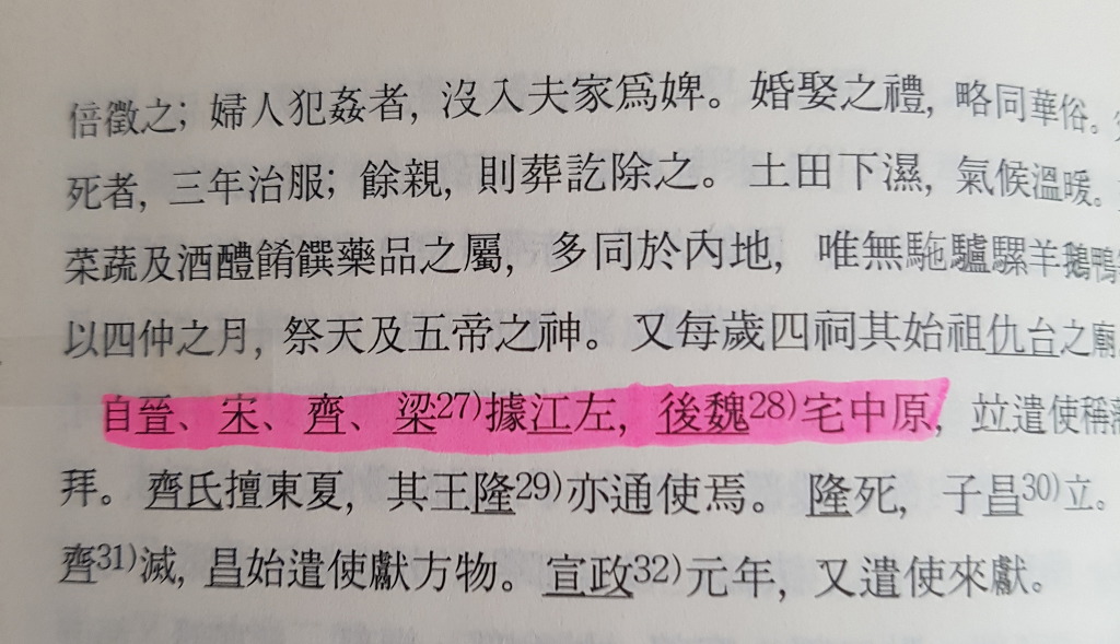'백제는 진송제양시대 부터 양자강 동쪽에 의지하였고,북위는 중원에 본거지를 세웠다' 보다는
