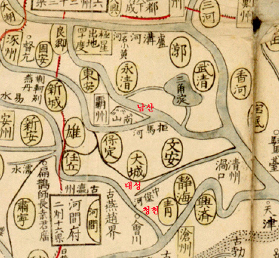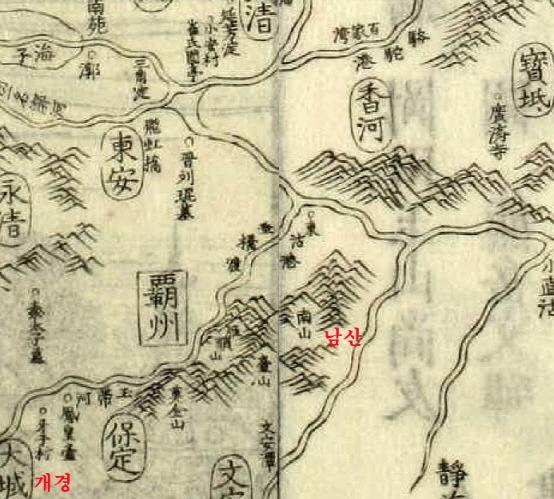 아래 청시대 대청광여도와 하북현도를 보면 고려개경인 대성과 남산과의 거리와 방향이 보여지는데 고래로 고구려,백제,신라의 초기 및 후기지역이었다.