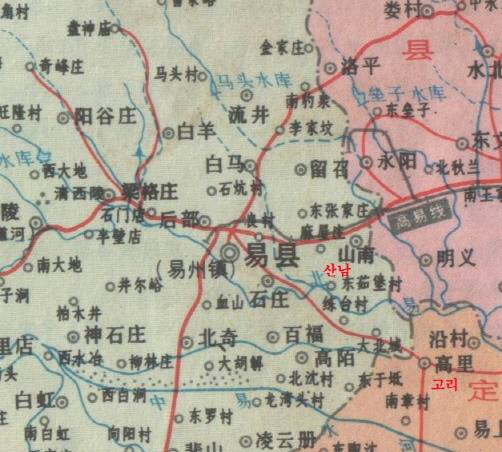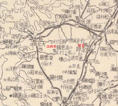 고려지명 정흥 서쪽에 고리진(고려진)과 고림촌,고비점이라는 고려지명이 보인다.(군사지도)