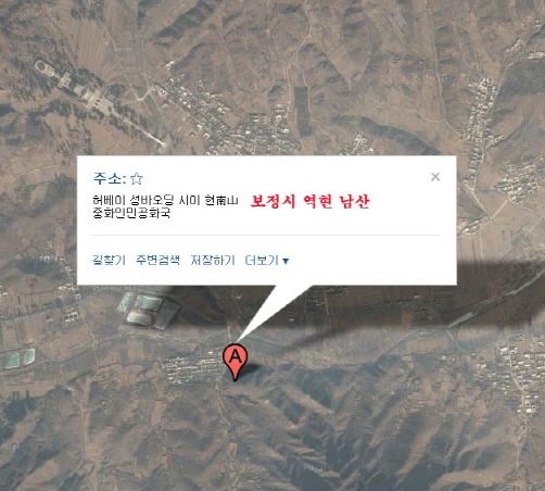 위의 지도를 기준으로 찾아본 위성지도에 역시 보정시에 南山이 나온다.