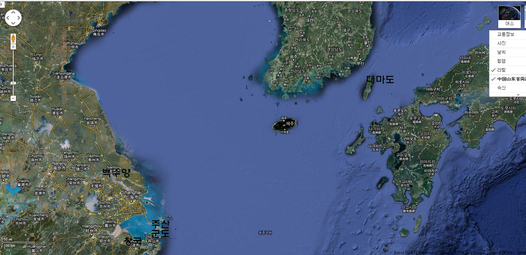 백수양 즉 흰바다이다. 내가 한반도를 제아무리 구글로 찾아봐도 흰바다가 없었다. 그런데 주산군도 위에 흰바다가 정말 존재했다.