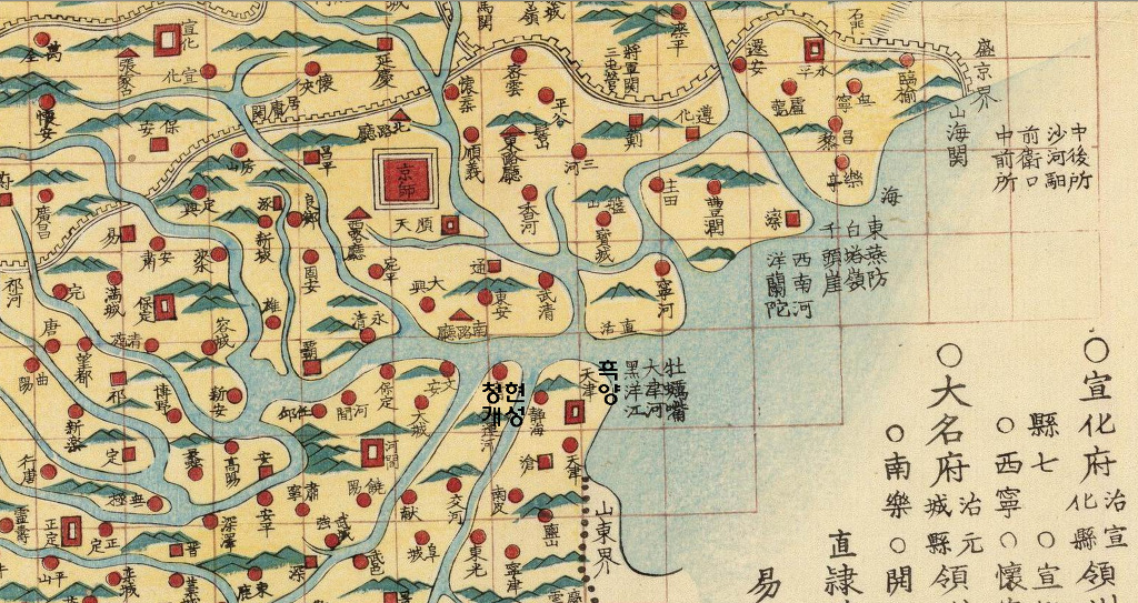 청나라 고지도에 분명히 지금 천진과 청현 일대를 흑양 즉 흑수양 (검은바다)라고 분명히 표기했다. 송나라 사신 서긍의 목표지는 바로 지금 천진시와 청현일대였던 것이다. 이렇게 설명해도 아직도 왕건의 고려를 한반도 개성이라고 주장하면 자신의 머리를 의심해보기 바란다. -이상 카페 <손에 손잡고>에서 발췌-