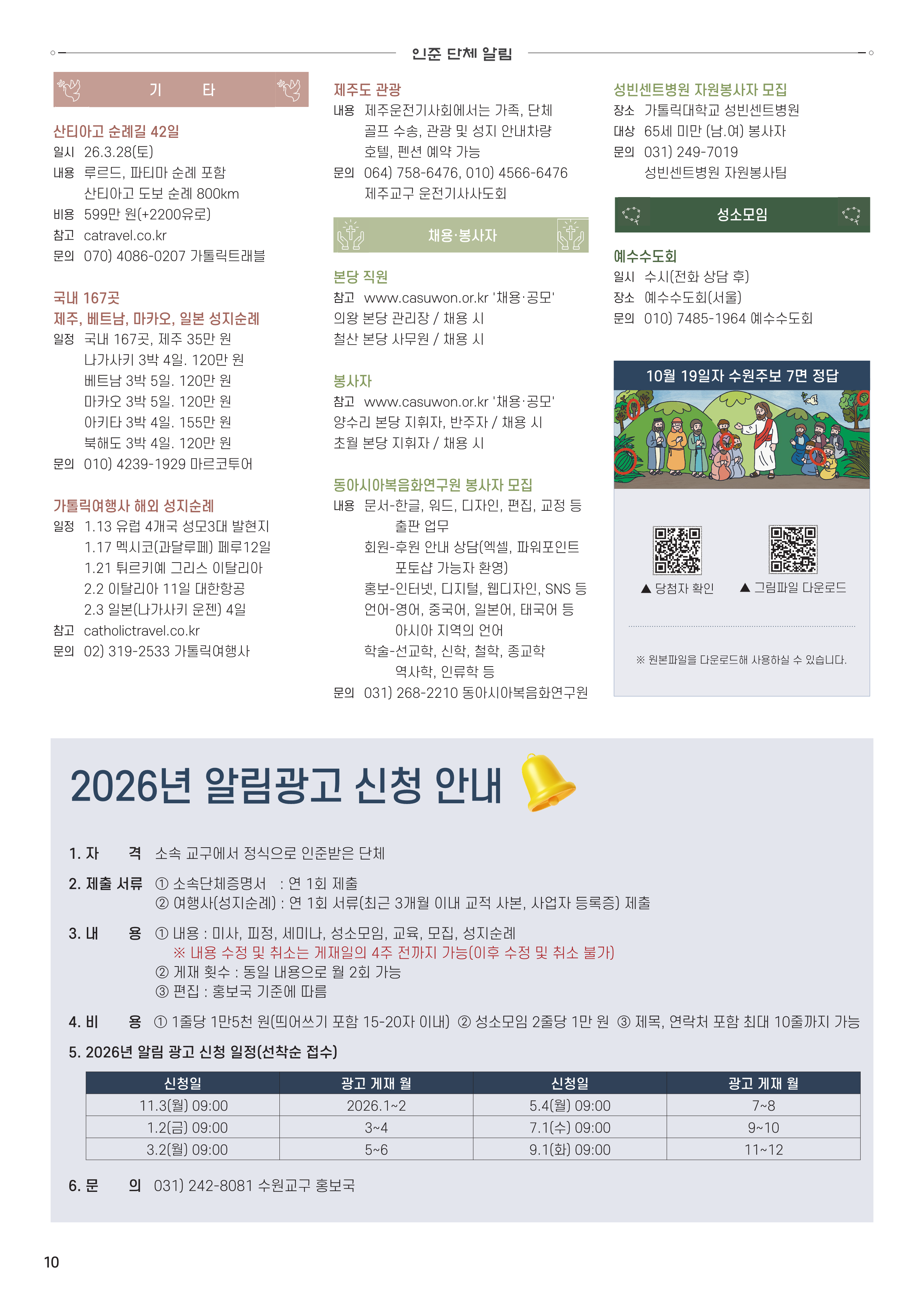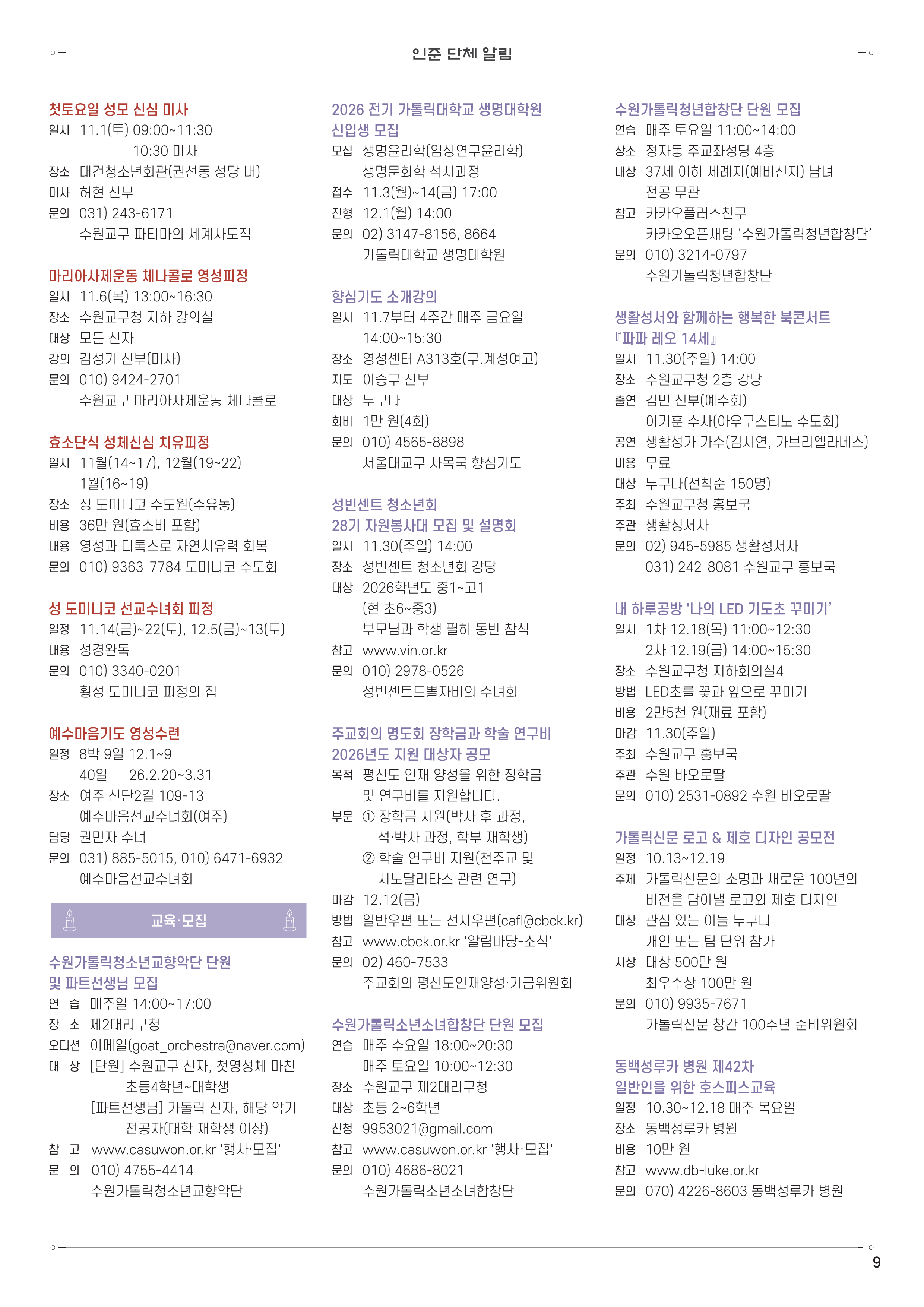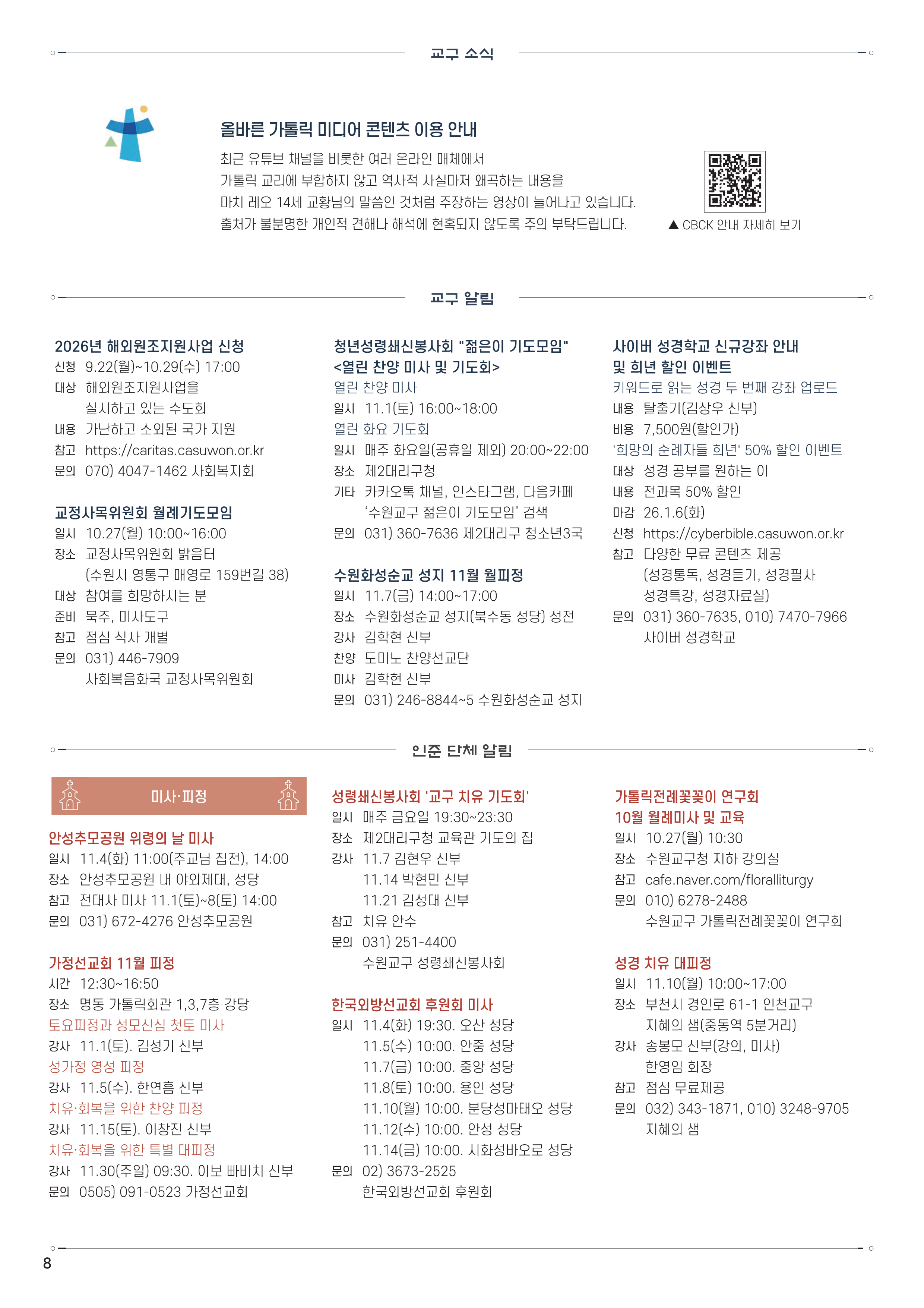 주보 - 연중 제30주일('25.10.26) 작성자조형준 에드몬드 사무장|작성시간25.10.24|조회수57 목록 댓글 0 글자크기 작게가 글자크기 크게가 다음검색 현재 게시글 추가 기능 열기 북마크 신고 센터로 신고 댓글 댓글 0 댓글쓰기 답글쓰기 댓글 리스트