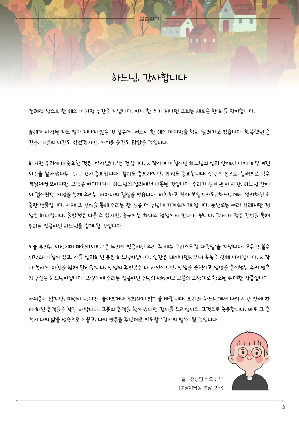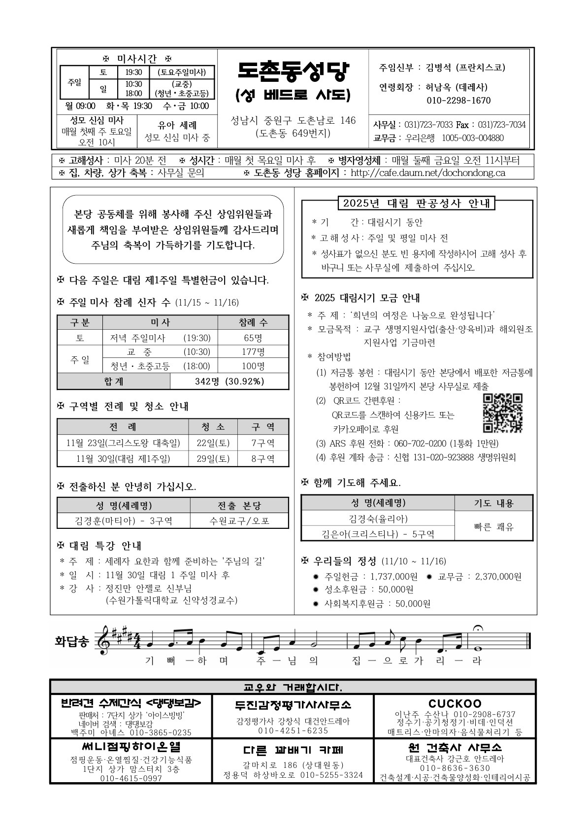 주보 - 온 누리의 임금이신 우리 주 예수 그리스도왕 대축일(성서 주간)('25.11.23) 작성자조형준 에드몬드 사무장|작성시간25.11.22|조회수52 목록 댓글 0 글자크기 작게가 글자크기 크게가 다음검색 현재 게시글 추가 기능 열기 북마크 신고 센터로 신고 댓글 댓글 0 댓글쓰기 답글쓰기 댓글 리스트