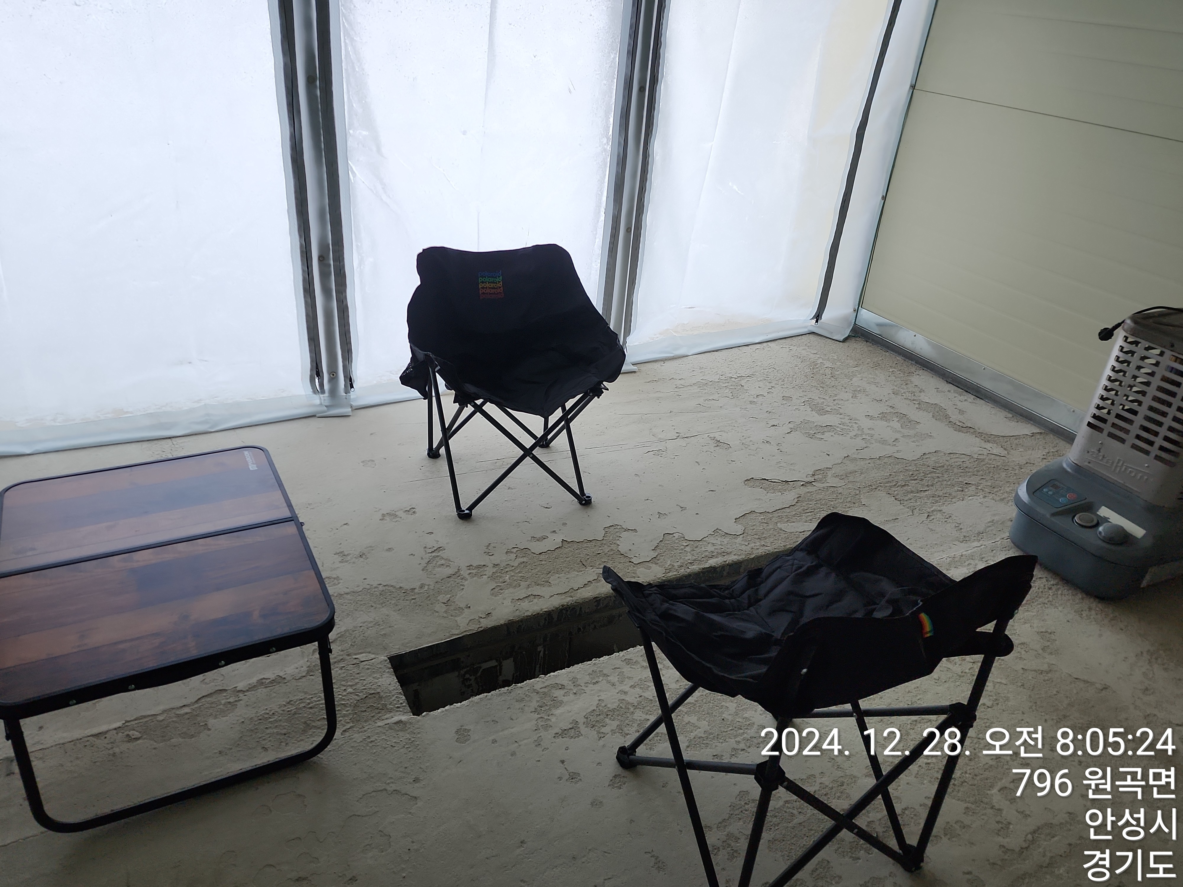 낚시공간에는 캠핑의자와 캠핑테이블이..